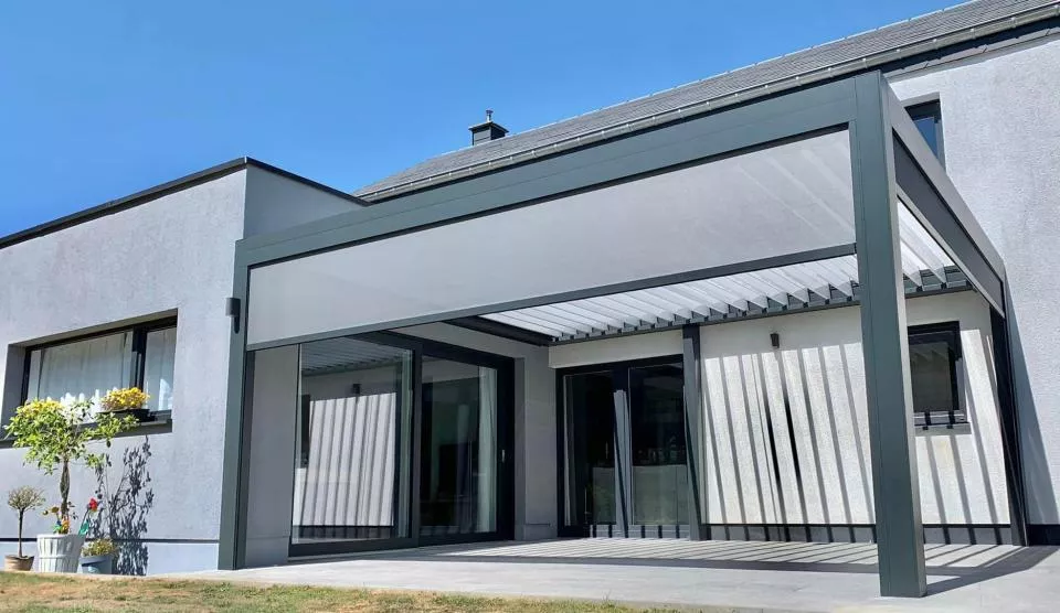 Cette pergola bioclimatique OPEN sera la complice idéale de leurs moments de détente et de fête sur leur jolie terrasse.